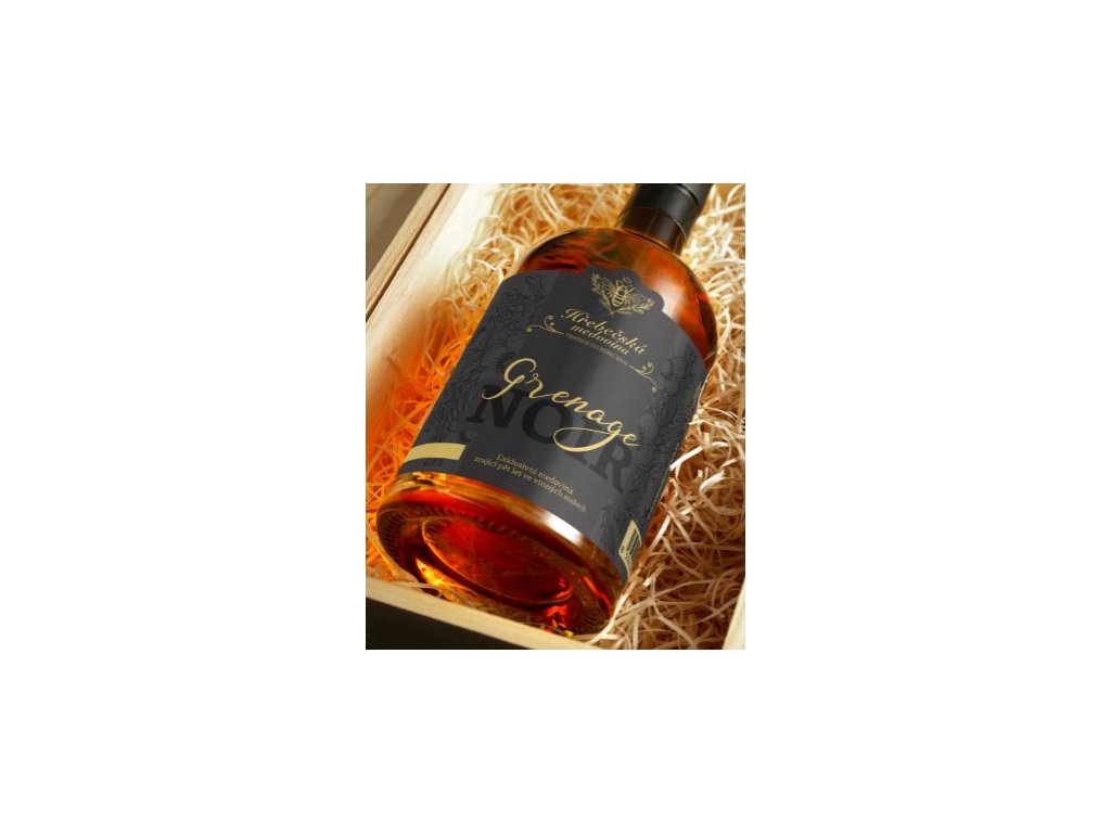 Medovina zrající 5 let v sudu po odrůdě Grenache Noir. Cílem je nejlepší možný chuťový profil s jemnou, bohatou vůní a vínovými tóny.
